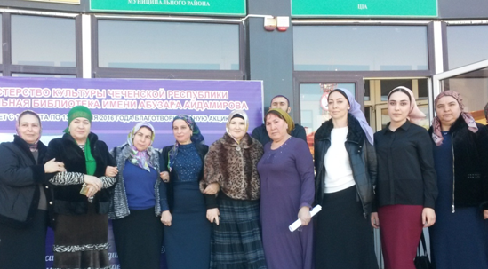 21 марта в читальном зале ЦБС Итум-Калинского муниципального района прошло мероприятие по подведению итогов благотворительной акции «Дарю книгу библиотекe». На мероприятии присутствовали: Помощник Министра культуры Чеченской Республики Яндиева ХадижатТембулатовна, представители Национальной библиотеки Чеченской Республики им. АбузараАйдамирова, начальник Аппарата Администрации Итум-Калинского муниципального района Берсанукаева Луиза Дениевна, ведущий специалист Отдела Спорта и Туризма Итум-Калинского муниципального района ГазимагомаеваПетиматАлиевна, а также наши верные читатели.